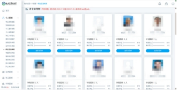 2.登录成功后,硕士生可点击左侧“个人管理”项,在下拉菜单中点击“师生互选申请”项,可查看本专业有招生计划的所有导师及导师招生计划。点击导师照片右下角,可查看导师个人详细信息。