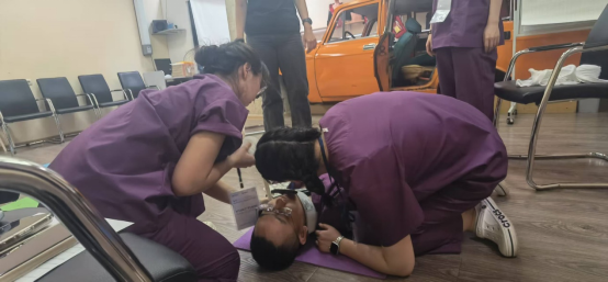 备赛期间,校院领导多次召开专题会议统筹部署,整合优质资源,为团队量身打造涵盖模拟病例推演、急救技能强化、跨文化沟通特训、英语实战演练等系统化训练方案。专业教师团队全程悉心指导,每一个训练环节都经过反复打磨。