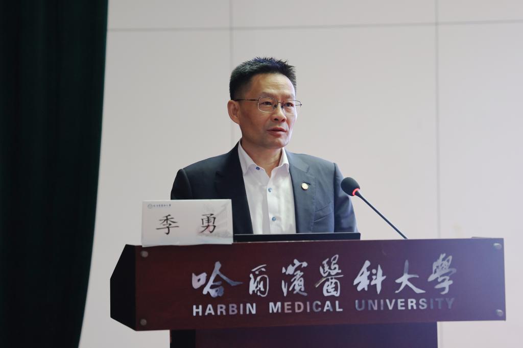 季勇对新研究生们加入哈医大表示热烈欢迎和衷心祝贺,通过回顾学校百年发展历程,特别是在流行性鼠疫防控、角膜移植、克山病防治、白血病治疗等领域的突出成就,带领同学们感受哈医大深厚的学术底蕴和历史积淀。他强调“崇生尚医传承探行”的大学精神,鼓励研究生们在学术研究中要保持严谨的态度,勇于迎接医学前沿的挑战,始终走在医学创新的最前沿。