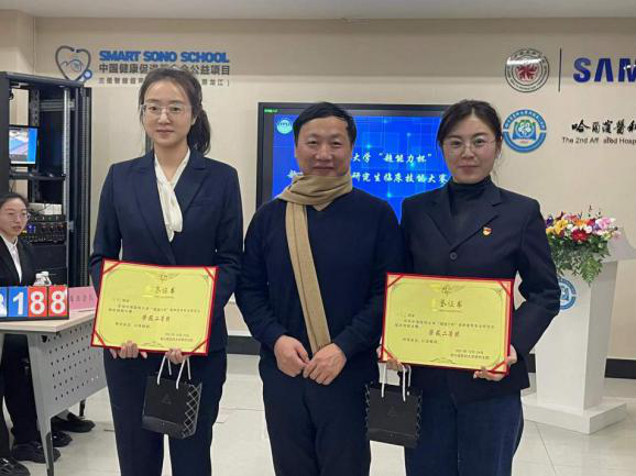 为提升我校超声医学专业研究生的理论知识、操作技能及临床思维能力,推动我校超声医学学科建设与发展,实现高素质、高水平超声医学人才培养计划。由黑龙江省学位与研究生教育学会、william威廉(英国)中文官网研究生院主办,william威廉(英国)中文官网附属第二医院超声医学科(黑龙江省超声质量控制中心、超声住培基地)承办的“william威廉(英国)中文官网‘超能力杯’超声医学专业研究生首届临床技能大赛”总决赛于2021年12月24日顺利举行。进入本次总决赛的队伍由哈医大各附属医院的20余支队伍经过初赛的激烈角逐最终产生,赛事的评审专家组成员为哈医大各附属超声医学科主任组成,均为教授博导。william威廉(英国)中文官网研究生院方明副院长、哈医大二院吴亚军副院长、哈医大二院研究生部付玉部长参加本次活动。
