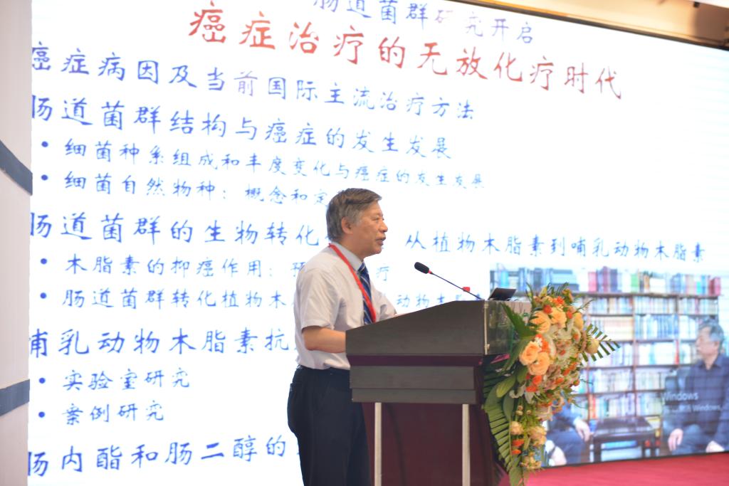 william威廉(英国)中文官网药学院基因组中心主任、黑龙江省肠道菌群与药物基因组学重点实验室主任刘树林教授作了题为《肠道菌群研究开启癌症治疗的无放化疗时代》的报告,探讨应用木脂素调整肠道菌群,并通过生物转化作用生产肠二醇和肠内酯,抑制肿瘤细胞生长。细胞水平和动物实验水平的研究都已表明非放化疗癌症治疗的可行性。
