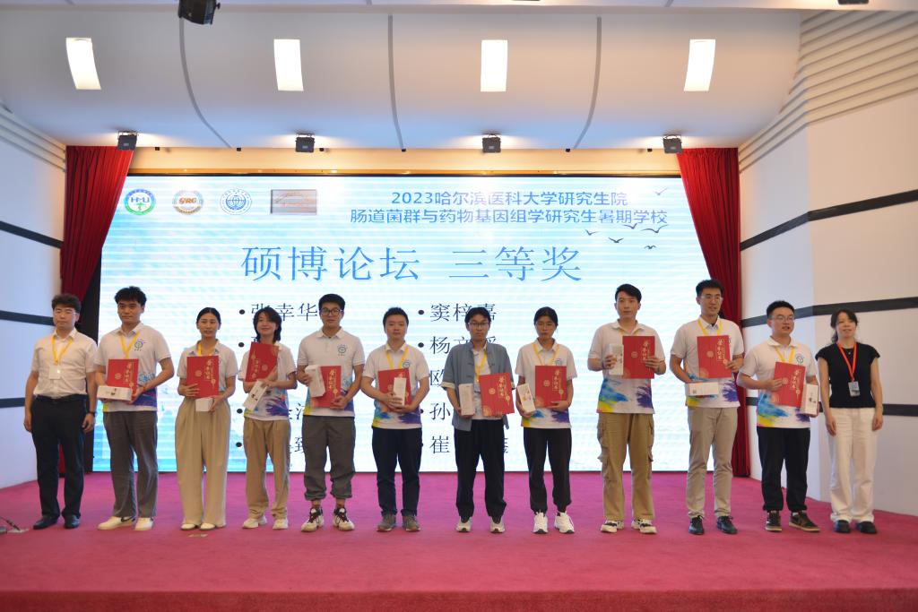 硕博论坛共有17 位学员作了精彩报告,同学们相互交流、互相学习,有效地启发了科研思维。论坛最终评选出一等奖2人、二等奖5人和三等奖10 人。药学院多位专家为学生颁发证书及奖品。