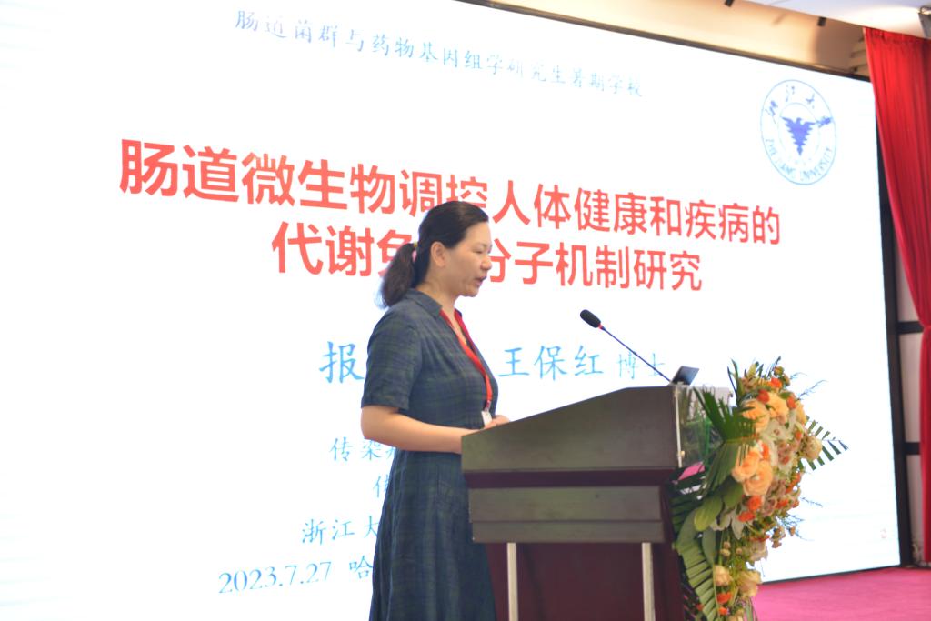 浙江大学医学院附属第一医院的王保红研究员作了题为《肠道微生物调控人体健康和疾 病的代谢免疫分子机制研究》的报告,阐明肠道微生物代谢物在几种主要疾病中的改变,包括肝病、代谢性疾病和精神或心理疾病。利用多组学分析和生物信息学分析,揭示了肠道生态失调介导的代谢物如何影响健康和系统稳态的潜在机制。探究宿主-微生物相互作用中的代谢免疫信号将有助于开发新的人类疾病诊断和治疗方法。