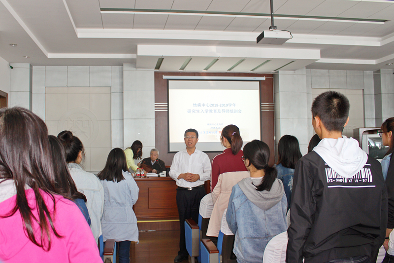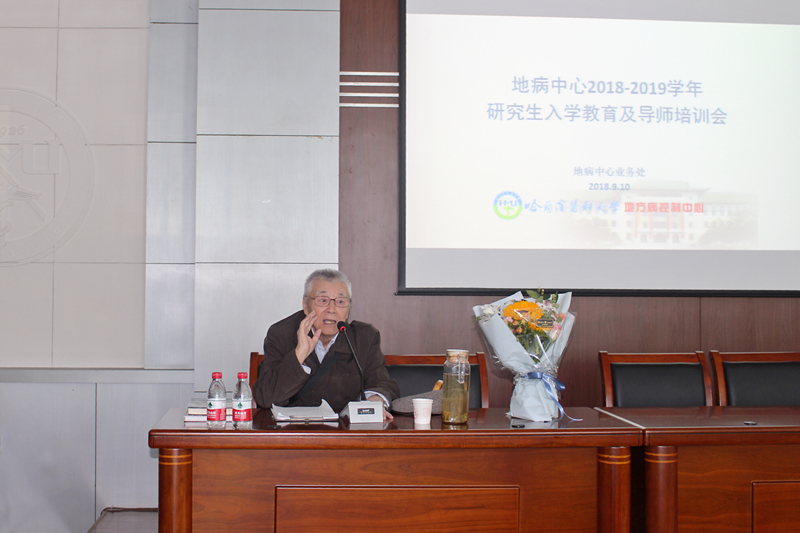 金秋送爽,丹桂飘香,在第三十四个教师节到来之际,为弘扬习近平总书记“教育为本”、“尊师重教”的重要思想,地病中心隆重召开2018-2019年度研究生入学教育及新导师培训大会。会议由地病中心业务处高彦辉处长主持,中心全体2018级新生及新晋研究生导师参加。本次会议有幸邀请到地病中心大骨节病防治研究所名誉所长杨建伯教授,为新同学、新导师做开学第一讲,题目为《大骨节病、克山病病因流行病机制及防治措施》。杨建伯教授,是我国著名的地方病学、流行病学家,流行病与卫生统计学专业博士生导师,是哈医大十大科学家之一,曾任哈医大公共卫生学院院长,中国地方病防治研究中心大骨节病研究所所长,中国疾病控制中心地方病控制中心大骨节病研究所名誉所长,《中国地方病学杂志》主编,卫生部病因流行病学重点实验室主任等职务。他长期从事大骨节病研究,阐明了大骨节病病因及发病机制,提出了中国大骨节病防治策略,为我国大骨节病控制做出了历史性贡献。