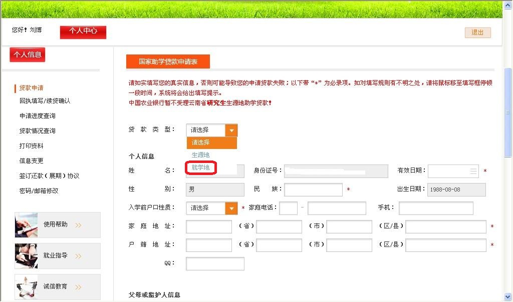 (2)附件二:《哈尔滨银行国家助学贷款(就学地)申请表》两份