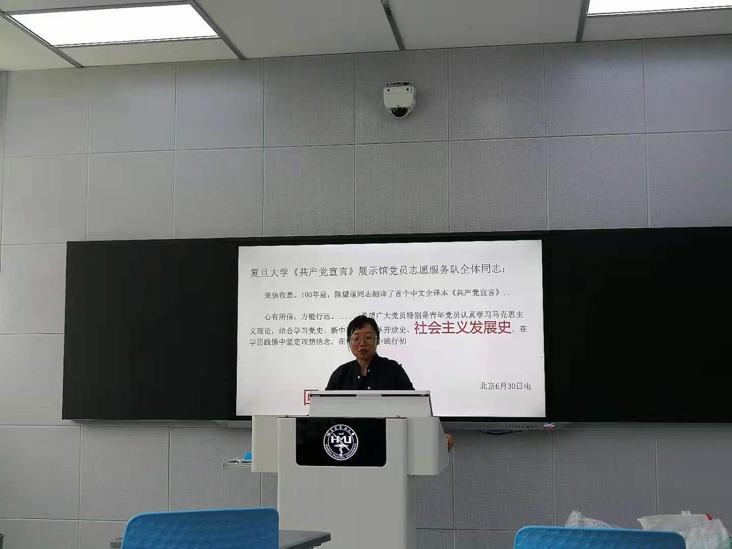 马克思主义学院马静松教授、青年教师息悦、王罕哲、孙宇航老师分别以《长征精神》、《辉煌的历史进程》、《社会主义发展史》和《改革开放的经验和启示》为主题授课。